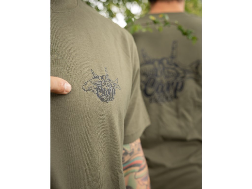 Prémiová gramáž, unisex střih a logo CARP RIDERS přímo na srdci, protože tam patří.